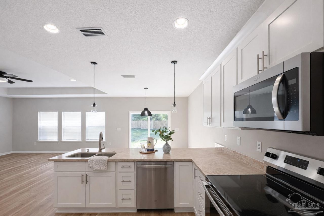 Welcome to this beautifully crafted brand-new construction offering 3 bedrooms and 2 bathrooms with modern finishes and thoughtful design throughout. From the moment you arrive, you'll appreciate the charming curb appeal featuring a clean brick facade, fresh landscaping, and an inviting covered entry. New privacy fence that wraps around the expansive back yard. Step inside to an open-concept layout filled with natural light, perfect for both everyday living and entertaining. The spacious kitchen is a true highlight, showcasing sleek white cabinetry, stylish countertops, stainless steel appliances, and a large island with bar seating-ideal...read more